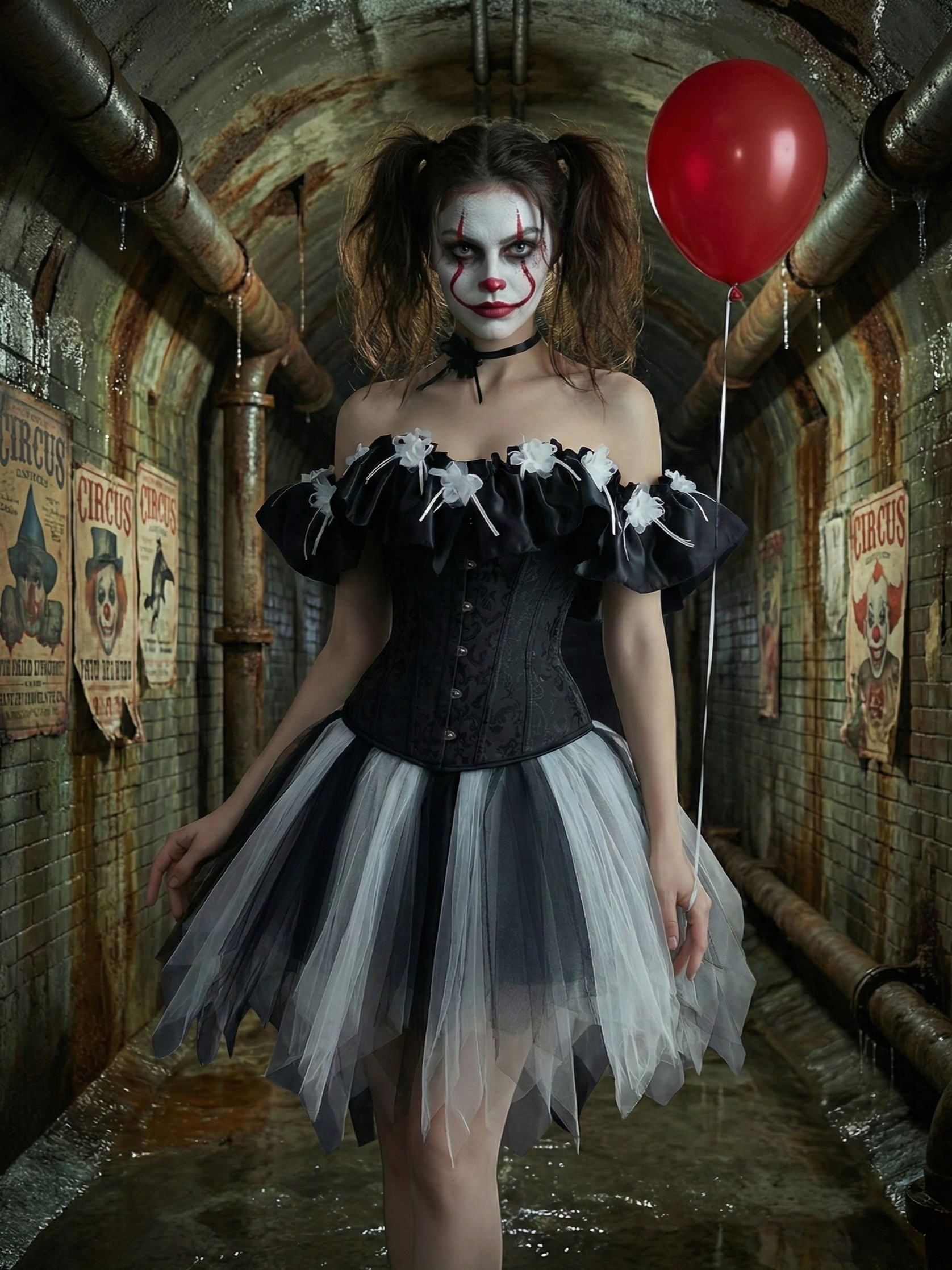 2276+7014-• Clowncore Corset Set /3PCS Alternative corsetwear item for styling, cosplay, and boutique resale.