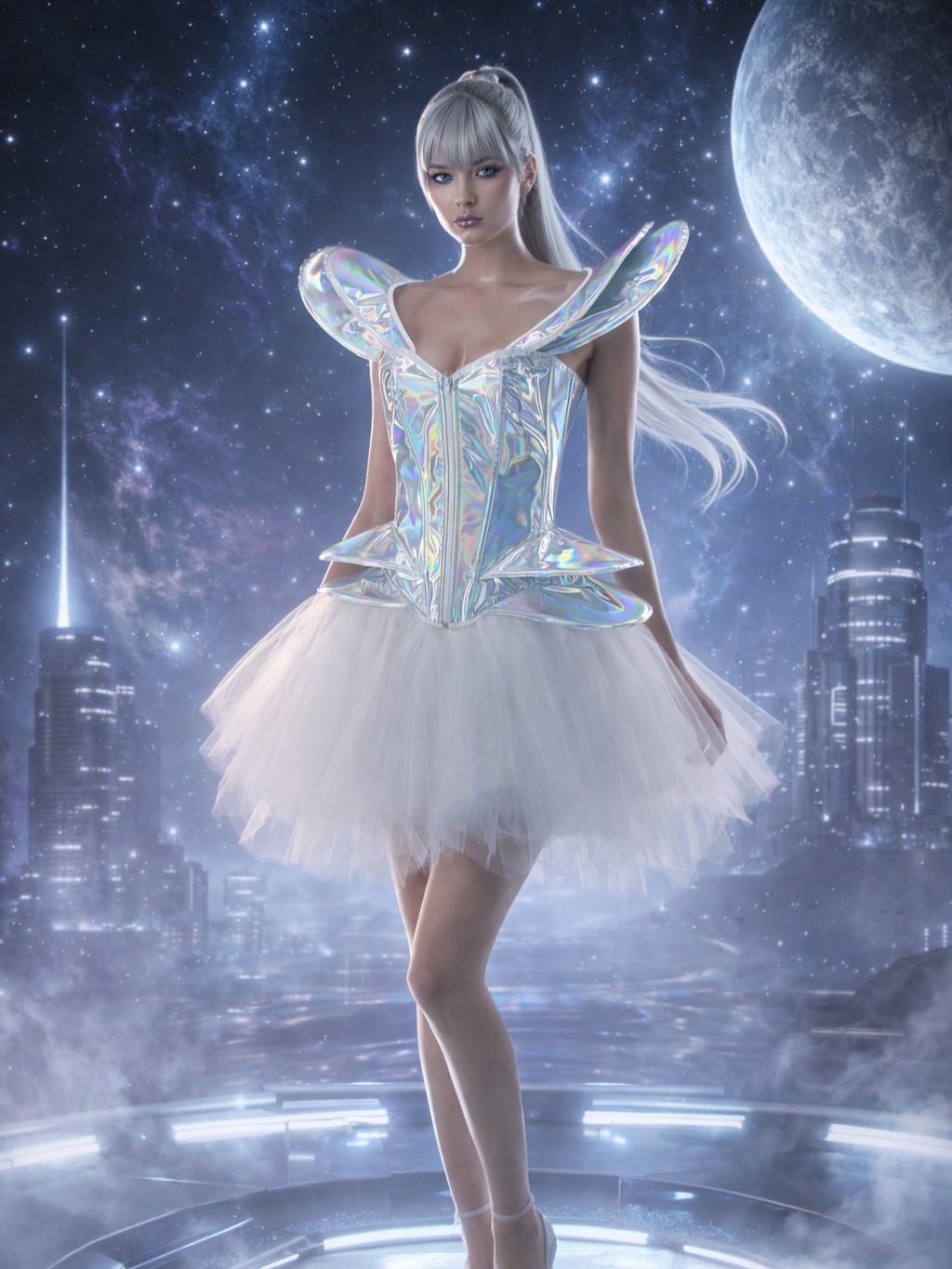 2407+7014-• Cyber Doll -Metallic Corset +Tutu Dress/2pcs. Costume set for cosplay styling, themed events, and boutique wholesale assortment.