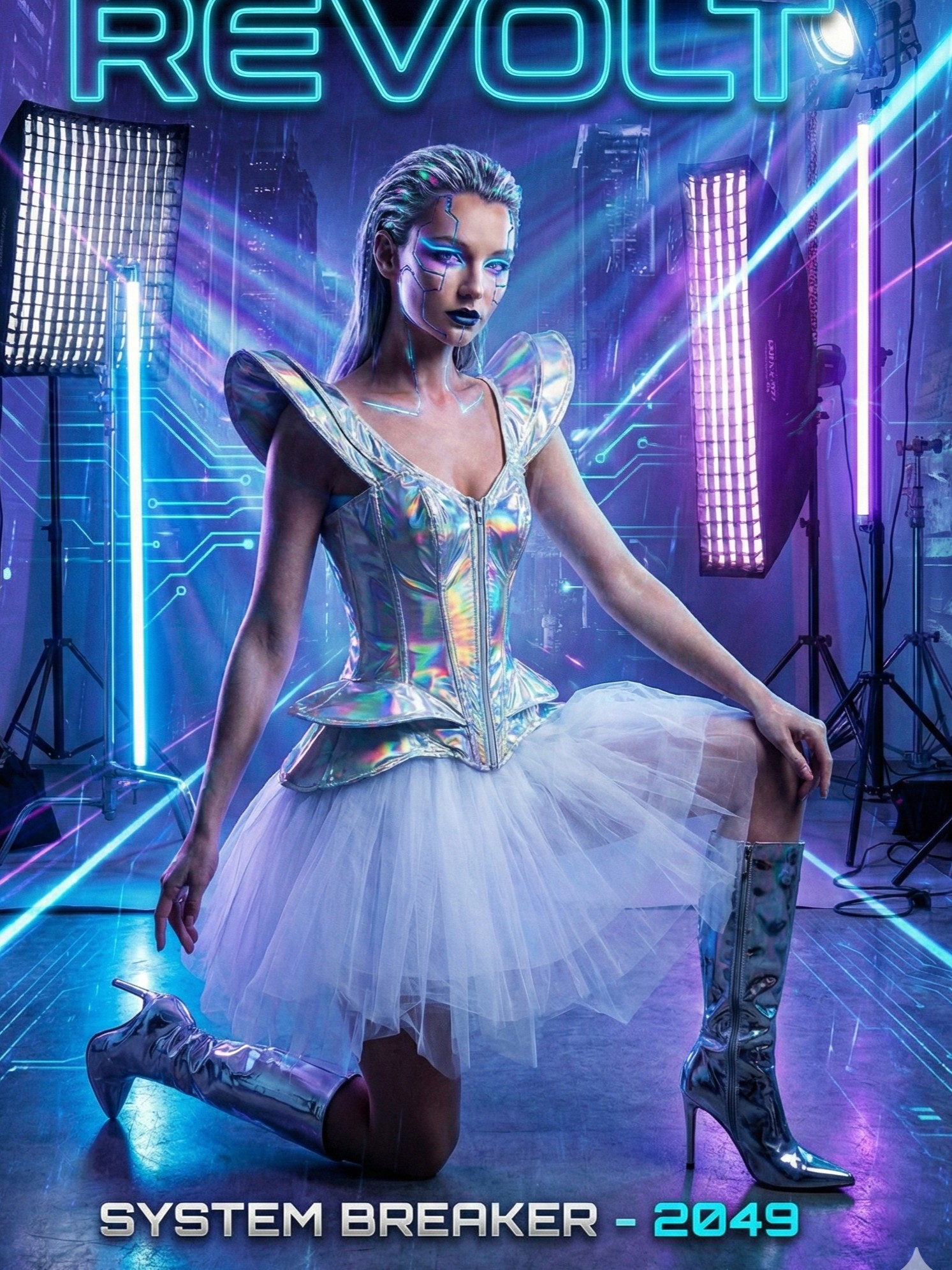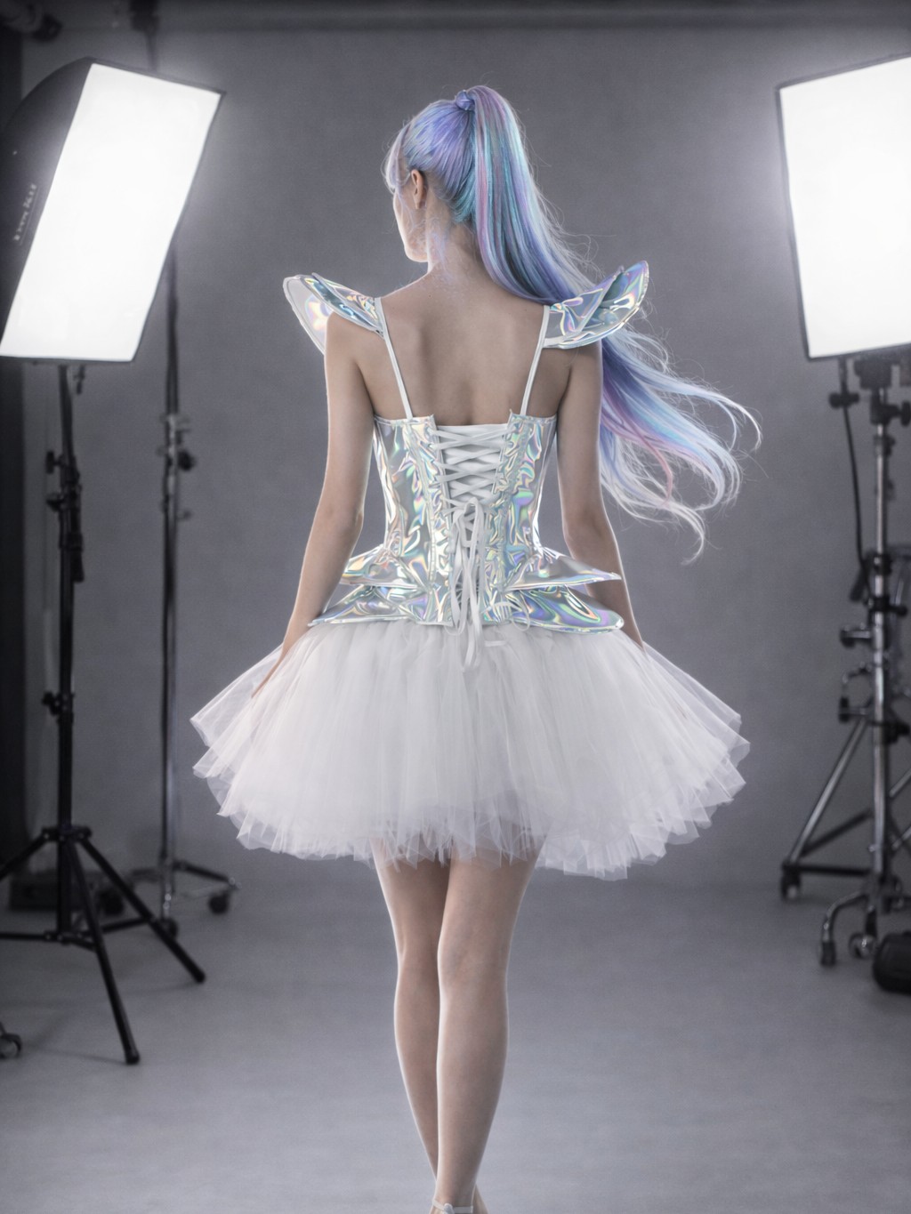 2407+7014-• Cyber Doll -Metallic Corset +Tutu Dress/2pcs