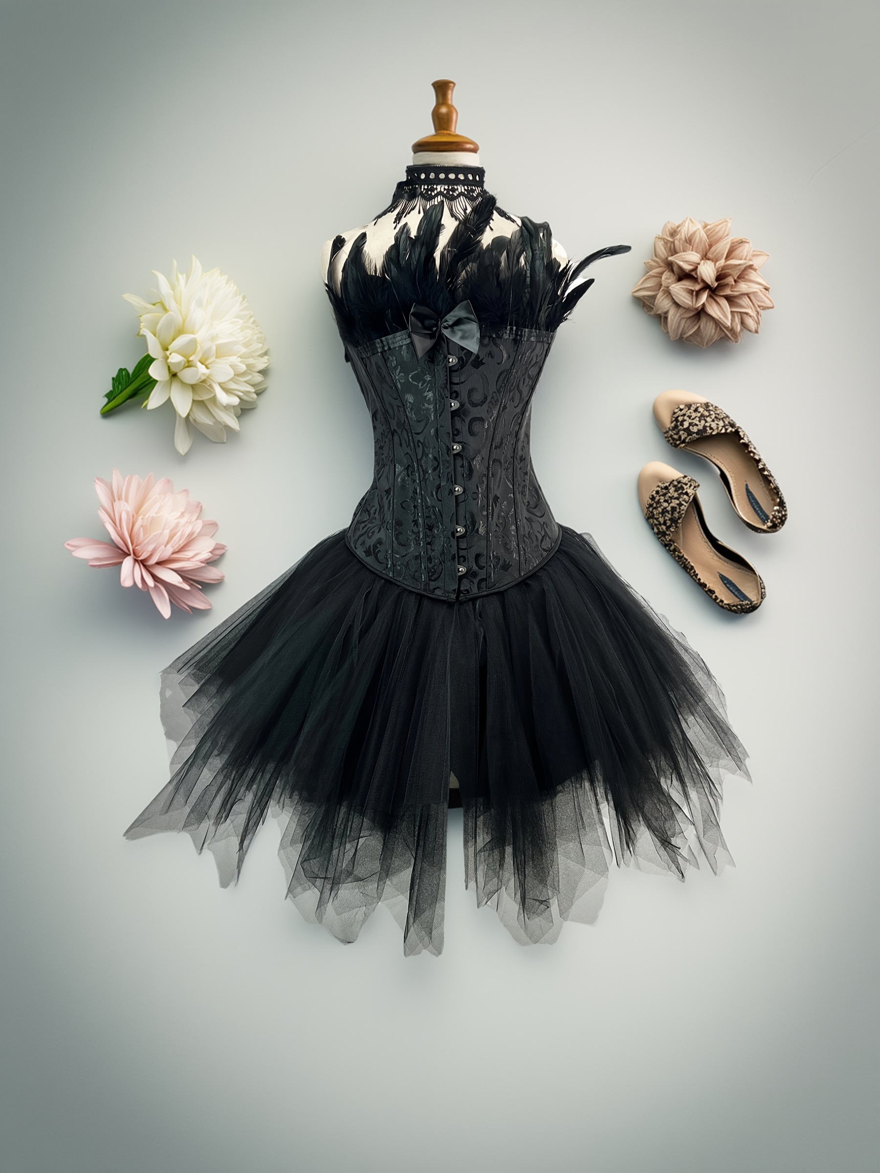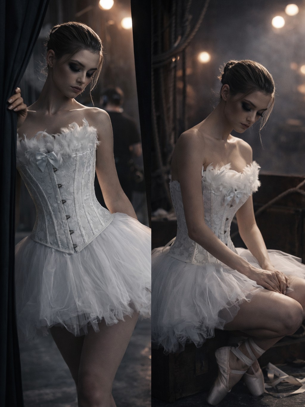 2419+7014-• White Swan Corset +Tutu Dress Balletcore /2PCS. Costume set for cosplay styling, themed events, and boutique wholesale assortment.