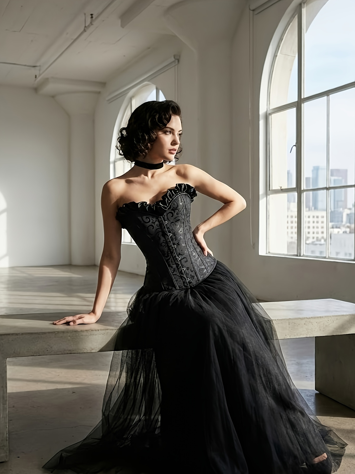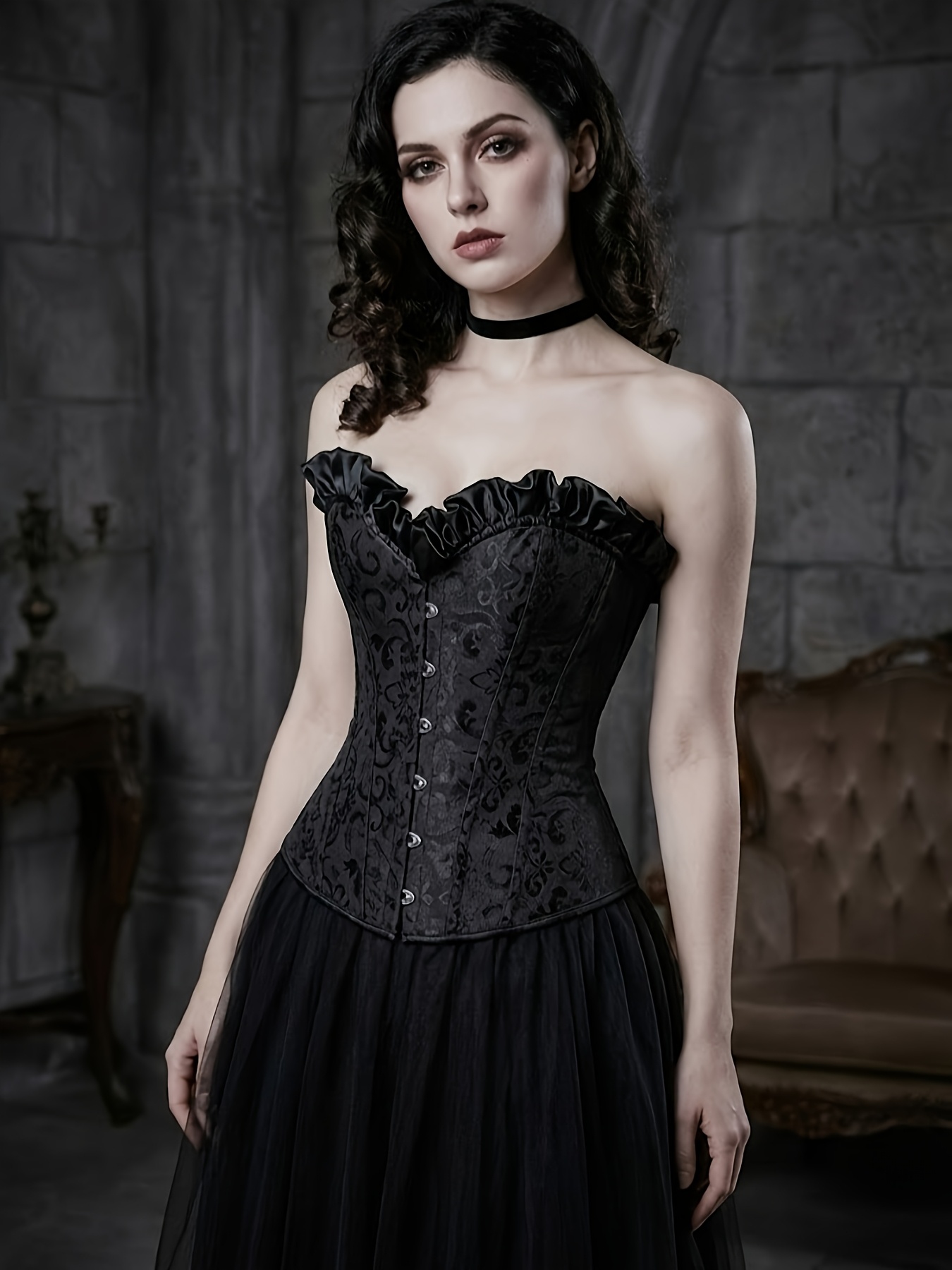 2505-Victorian dark retro gothic corset top/1pcs. Victorian-inspired, gothic Costume set for cosplay styling, themed events, and boutique wholesale assortment.