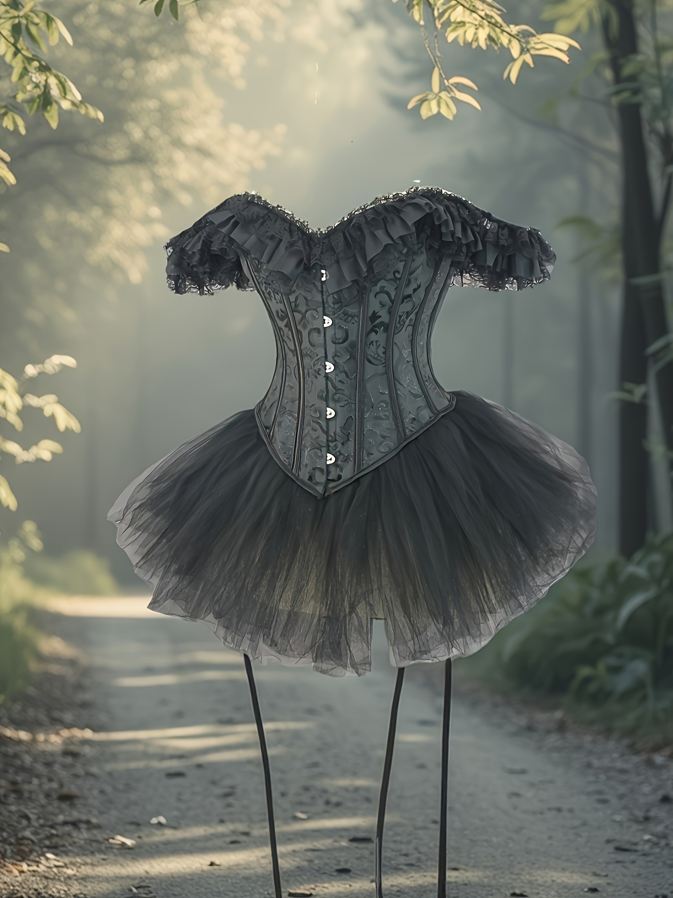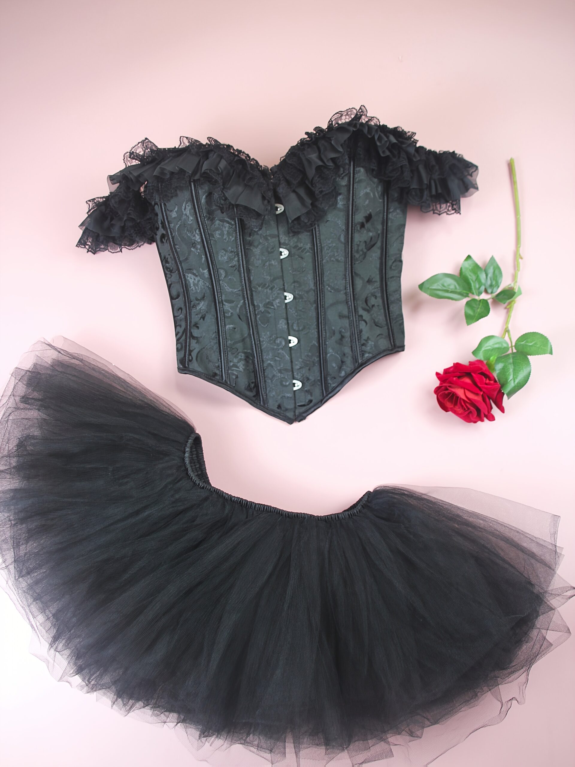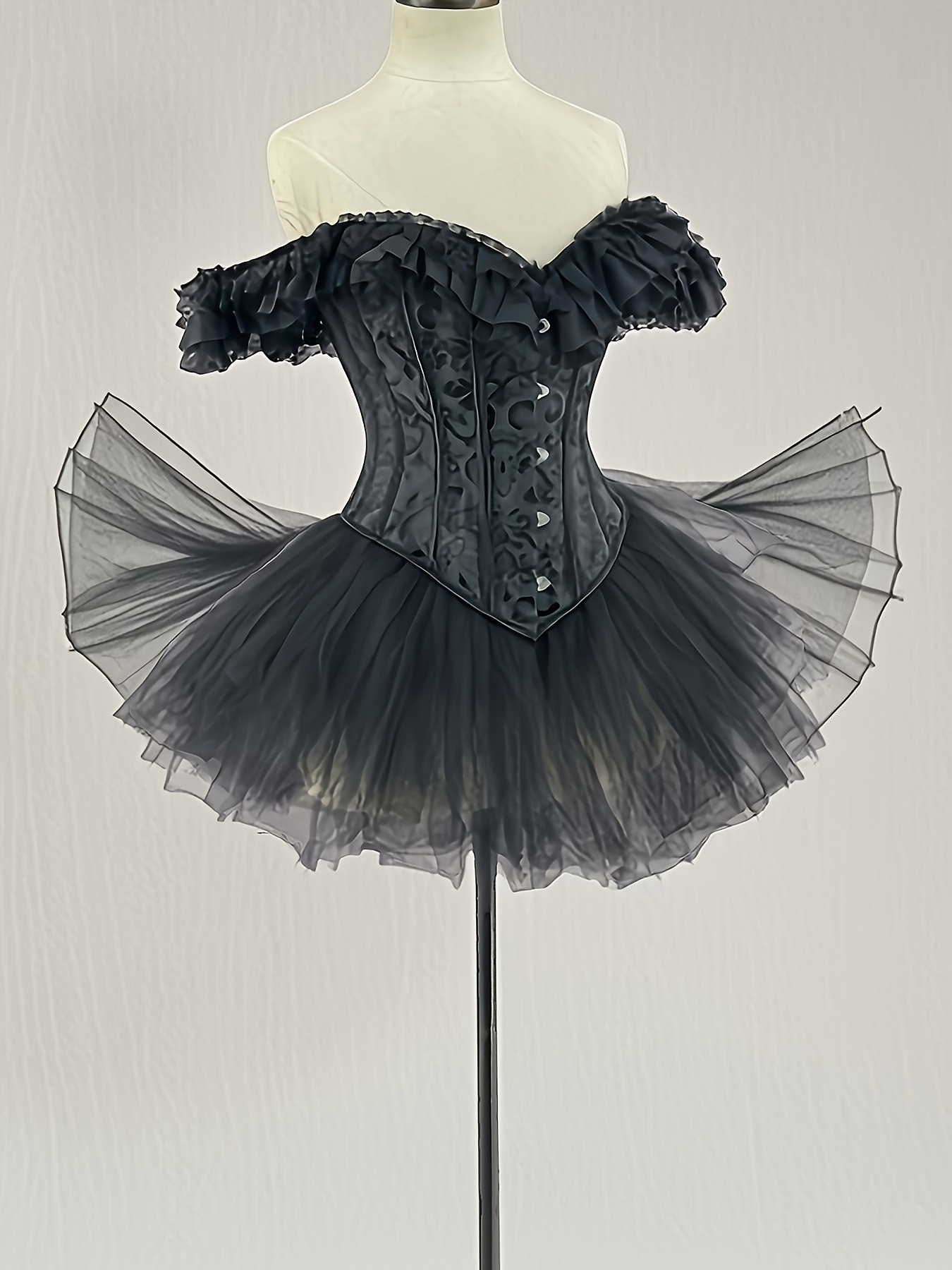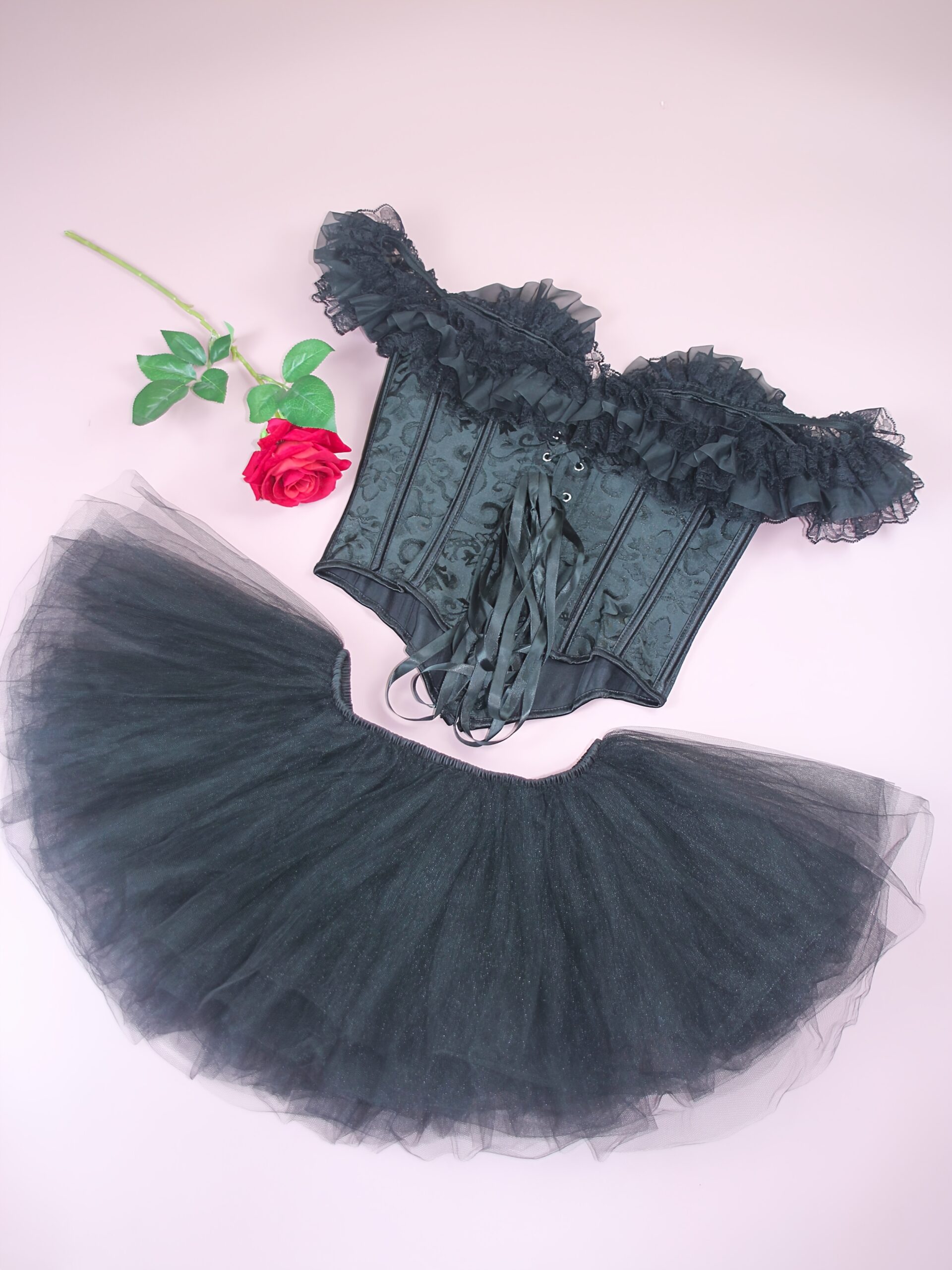 2506+7015-• Romantic Black Corset+tutu • Off-Shoulder Corset Dress /2pcs