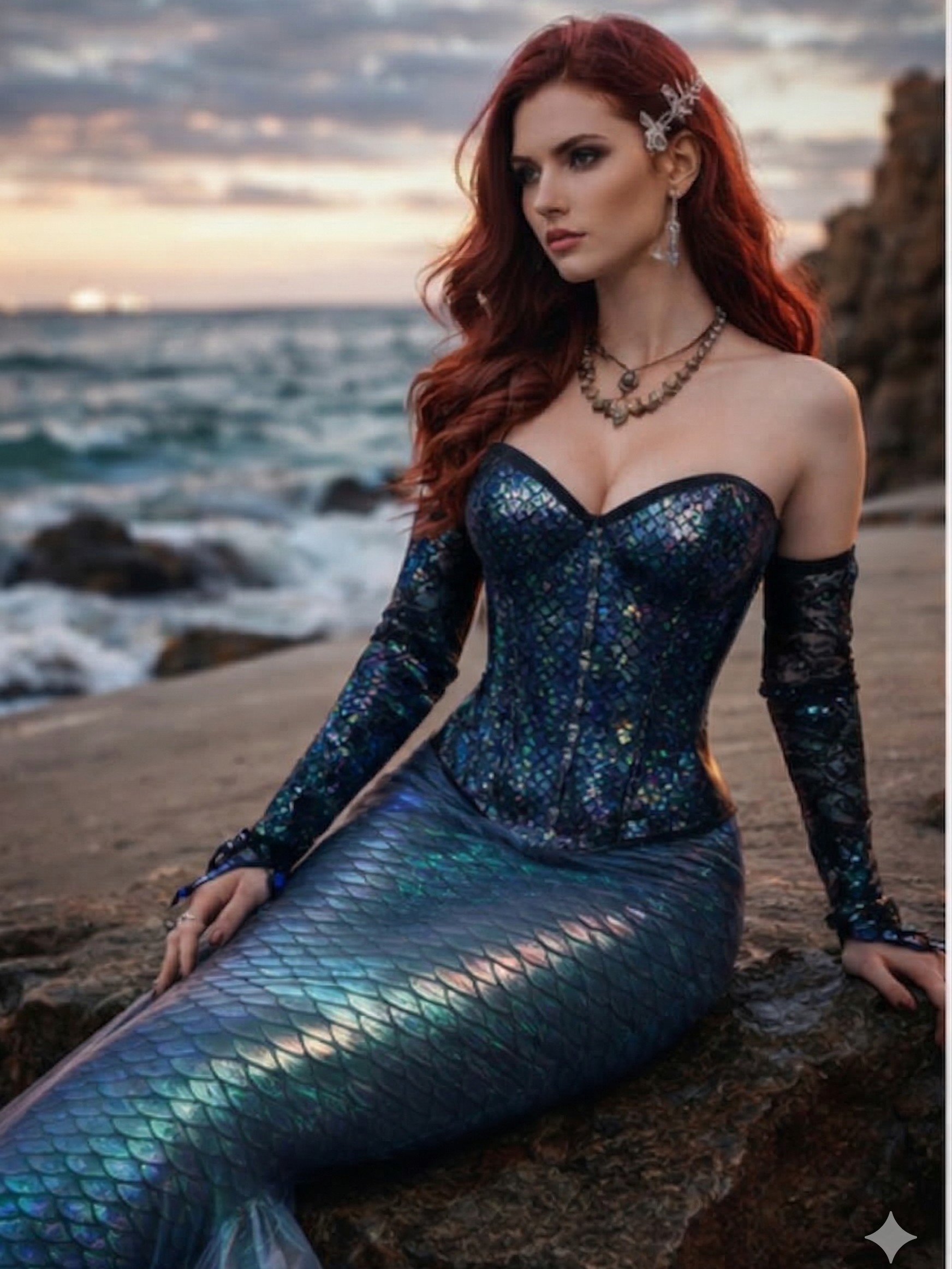 2513+K109-Halloween mermaid costume set.CORSET+sleeves/2PCS. Costume set for cosplay styling, themed events, and boutique wholesale assortment.
