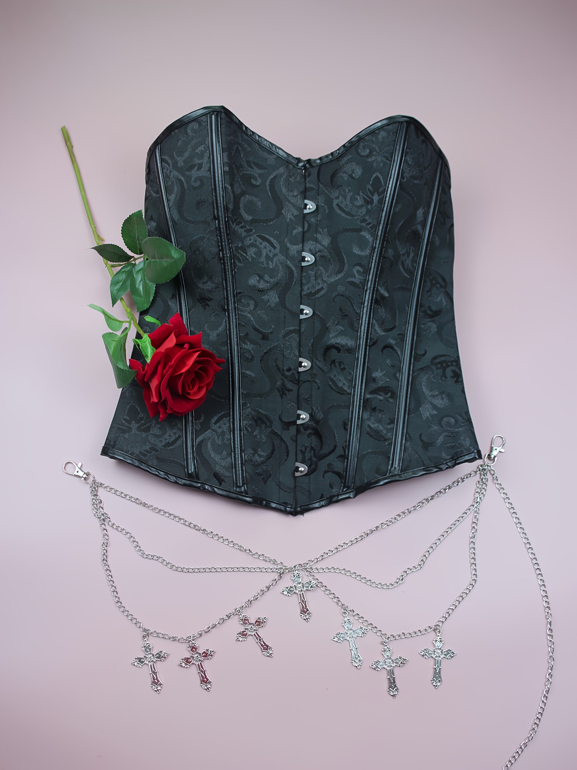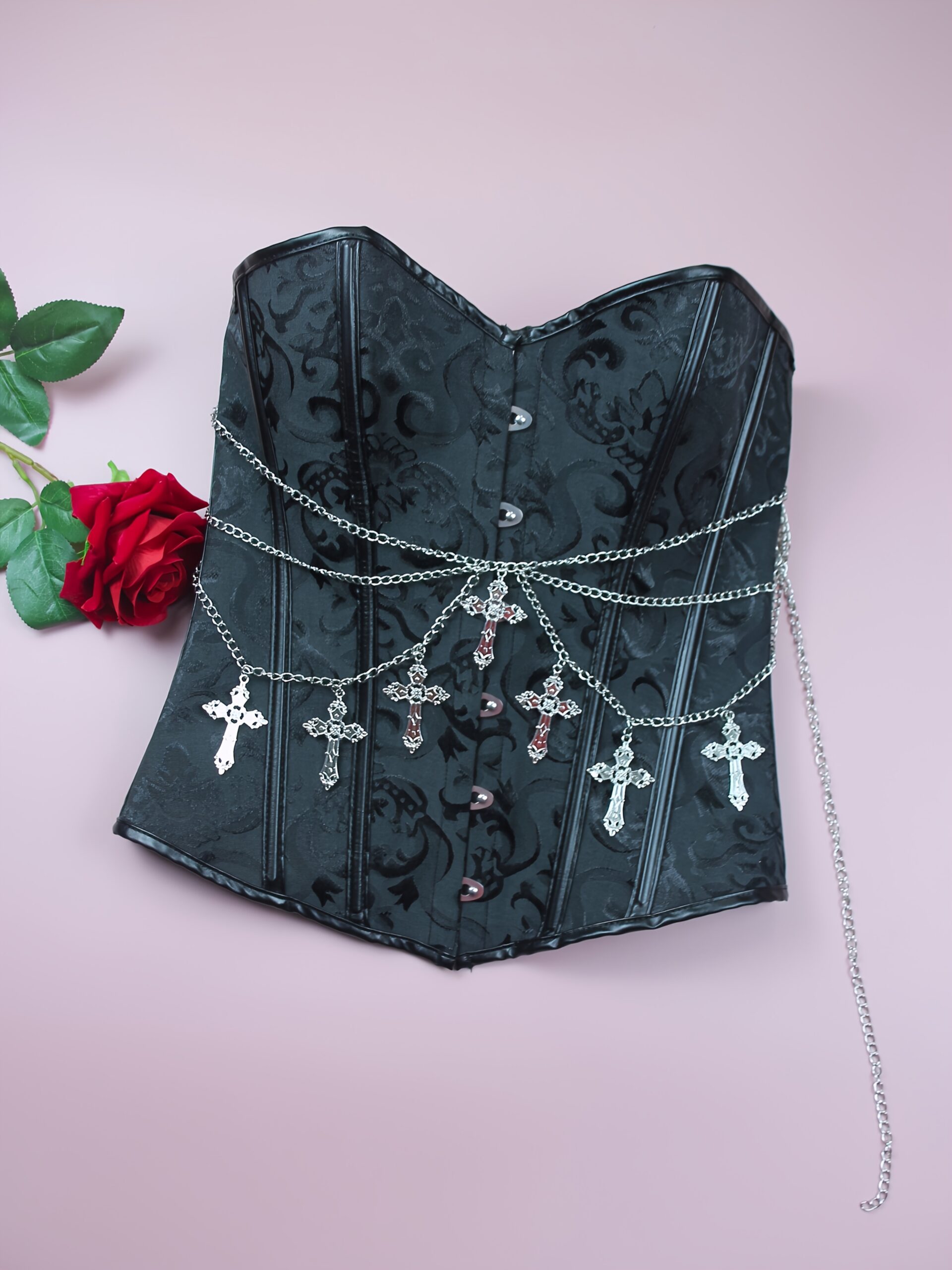 2516-Gothic Corset Top for Women – Lace-Up Boned Bustier/1PCS. gothic Costume set for cosplay styling, themed events, and boutique wholesale assortment.