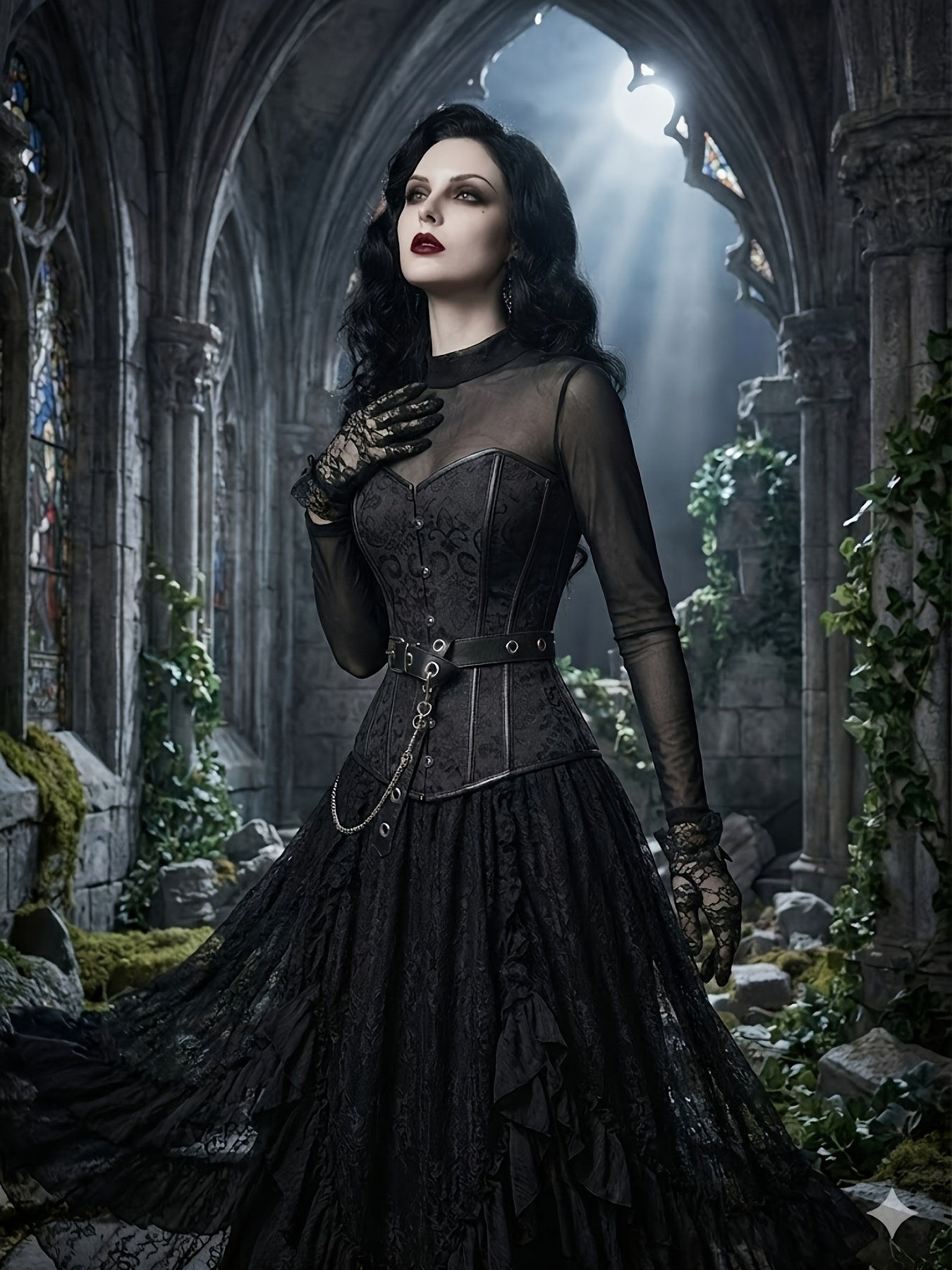 2520-Gothic Corset Top for Women – Lace-Up Boned Bustier/ 1pcs. gothic Costume set for cosplay styling, themed events, and boutique wholesale assortment.