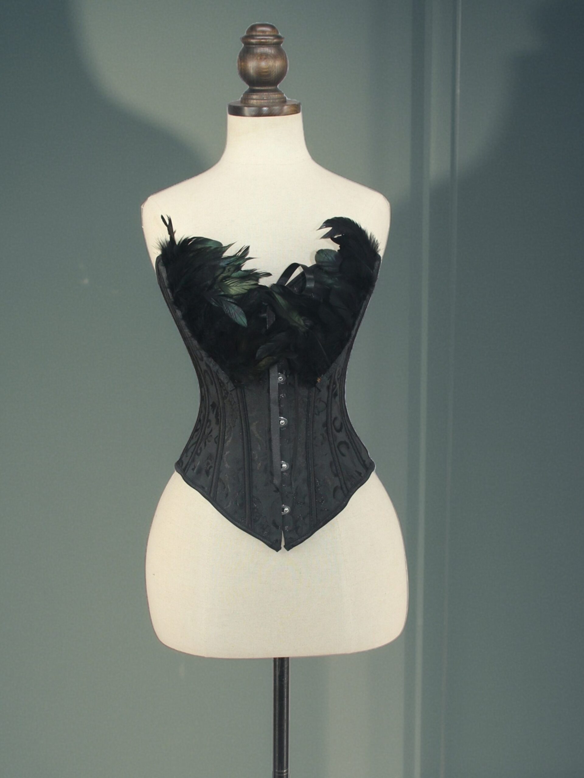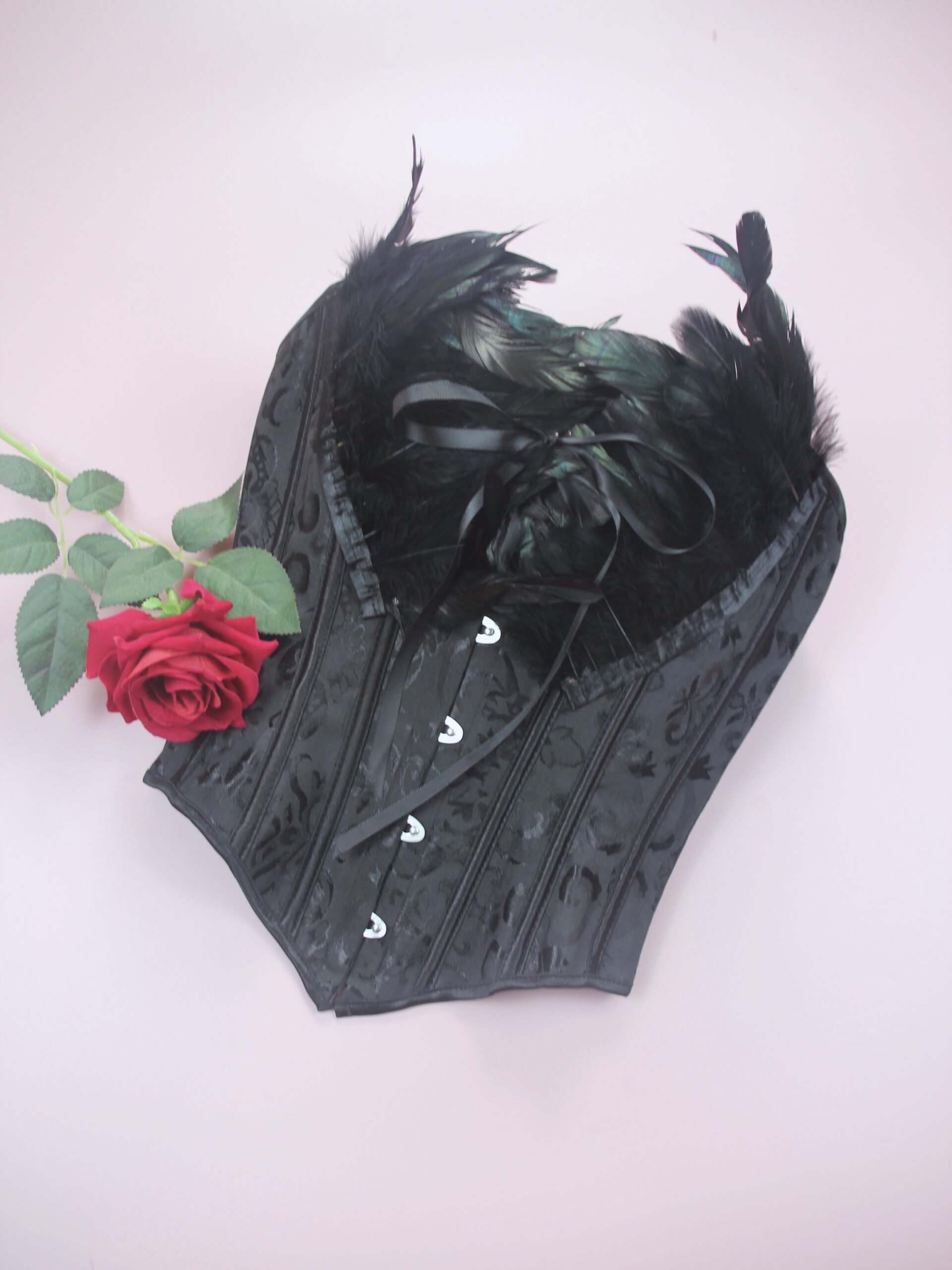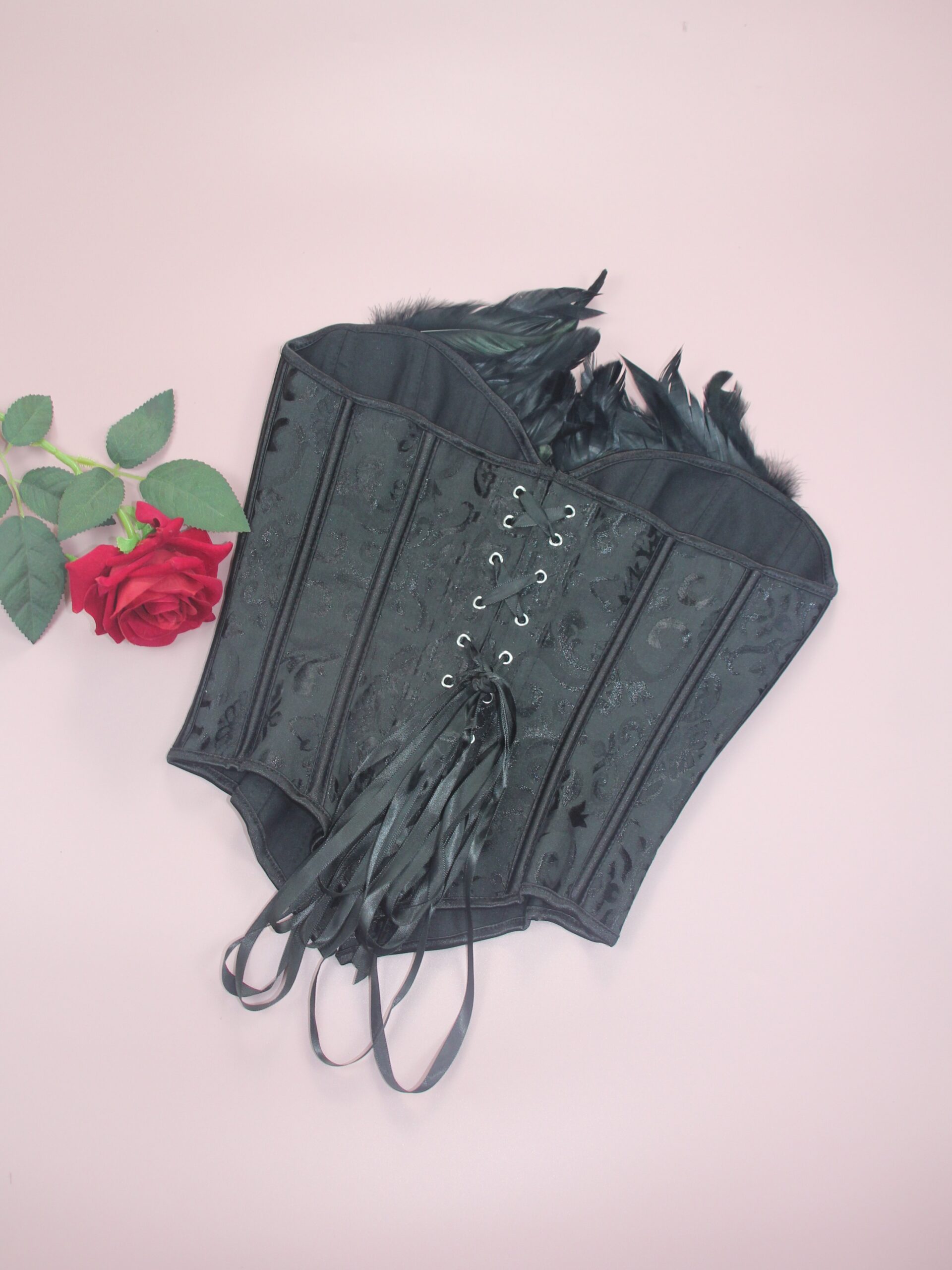 Make a dramatic entrance with this Jacquard Feather Corset Top. Luxurious feather trim at the sweetheart neckline adds a touch of glamour and romance, while the structured jacquard fabric with steel boning creates a flawless hourglass silhouette perfect for events, parties, or bold everyday styling.