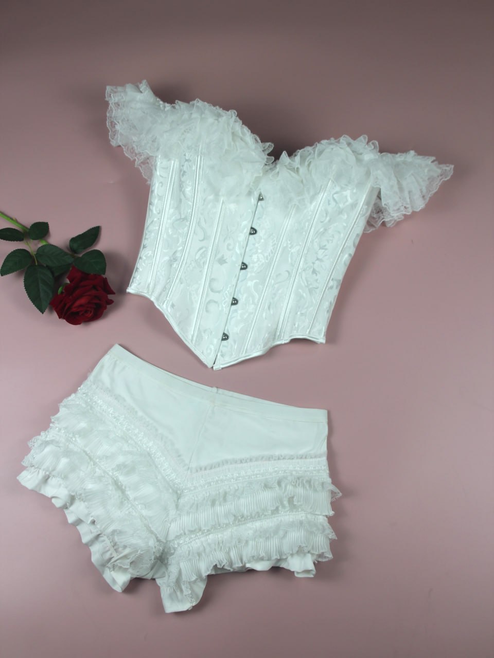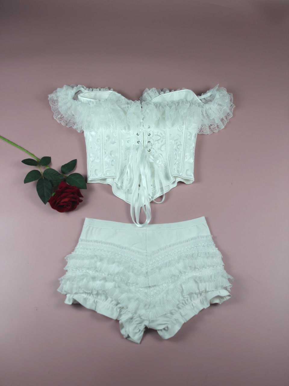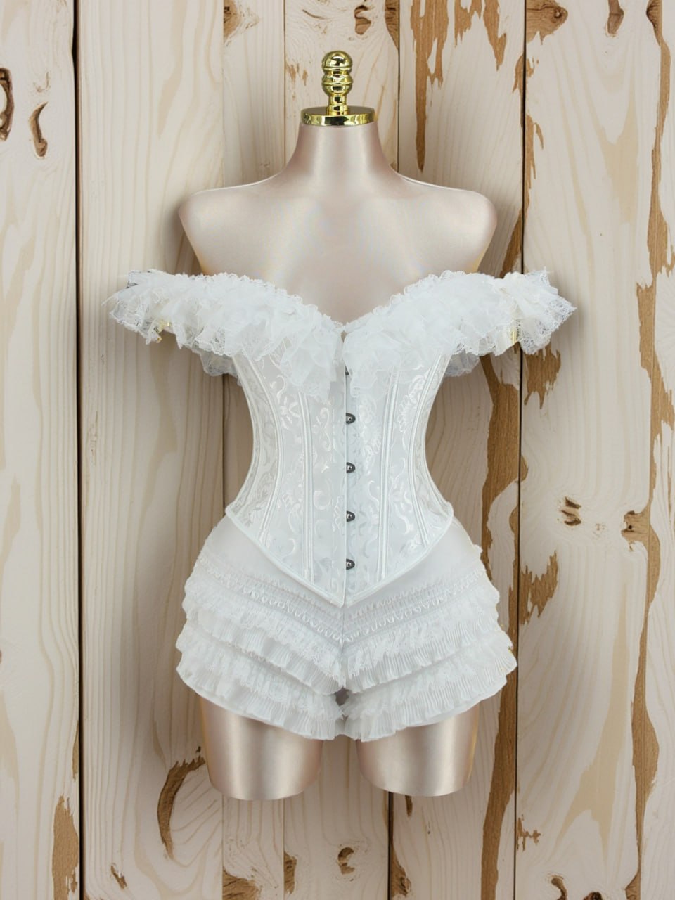 2506+7020 White Gothic Corset + Lace Shorts Set (2-piece)